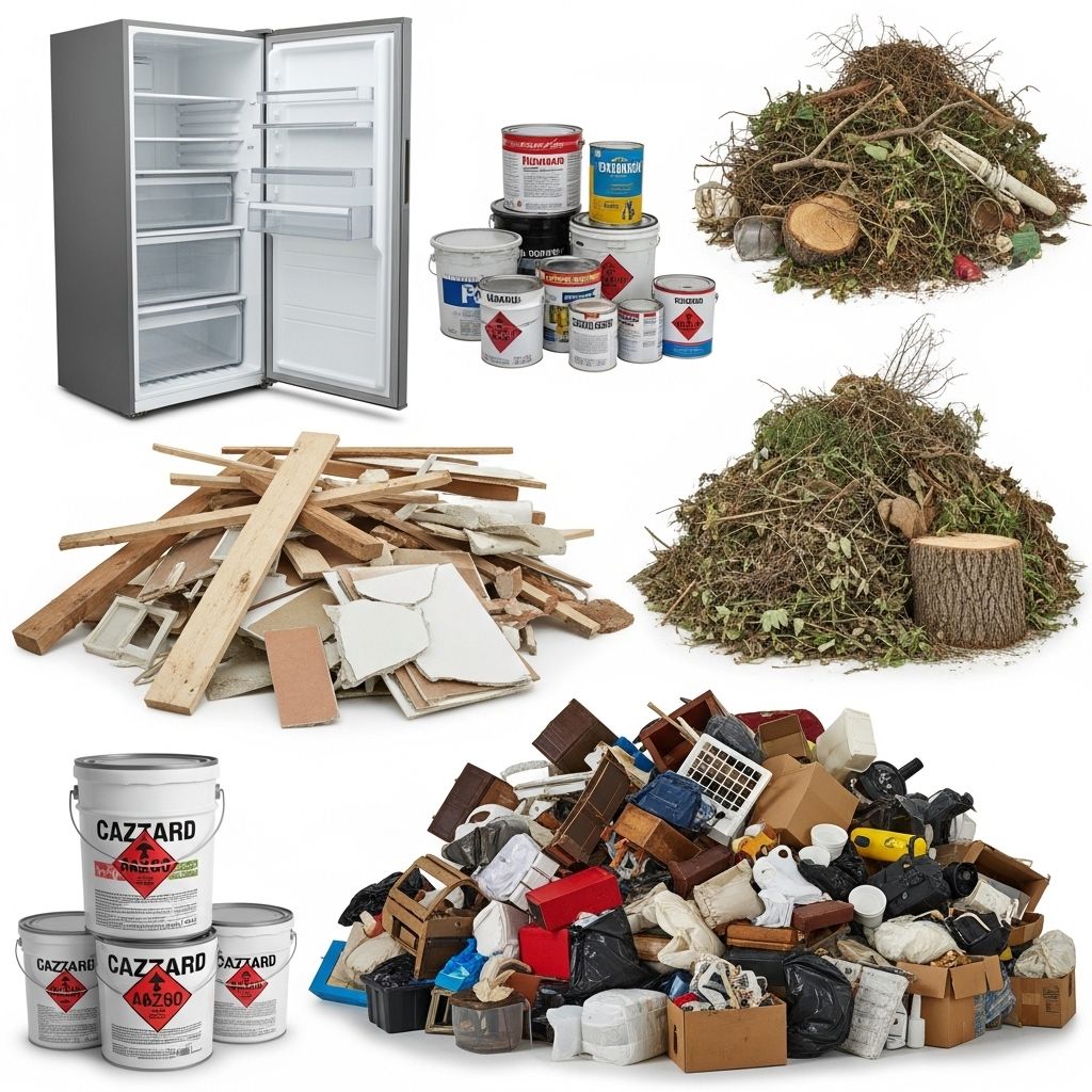 Hazardous Waste: Paints, chemicals, pesticides, and batteries pose environmental risks and require dedicated disposal methods.
